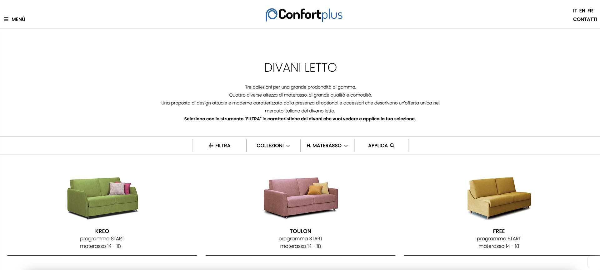 Il nuovo sito confortplus.it nasce su una piattaforma CMS personalizzata, progettato per elevare la brand awareness e valorizzare il catalogo prodotti attraverso un design moderno, d’impatto e funzionale.